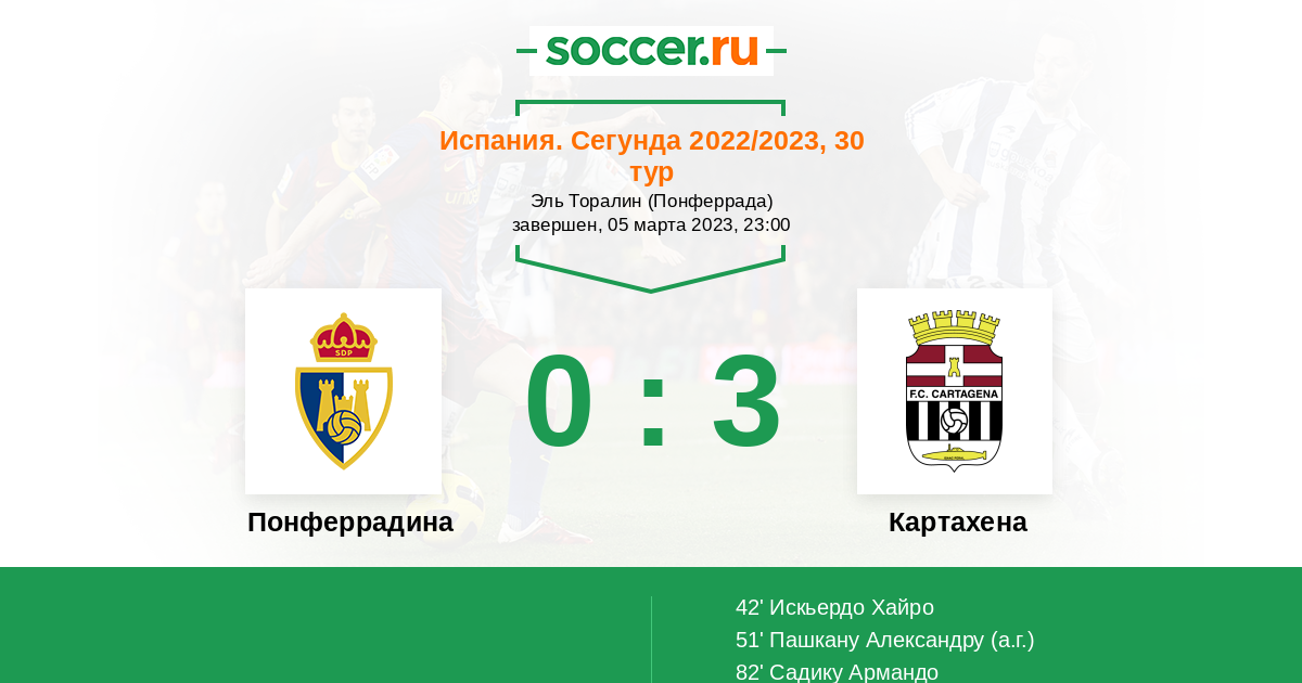 42' (0:1) Искьердо Хайро (20) (Родригеш Педру (23))