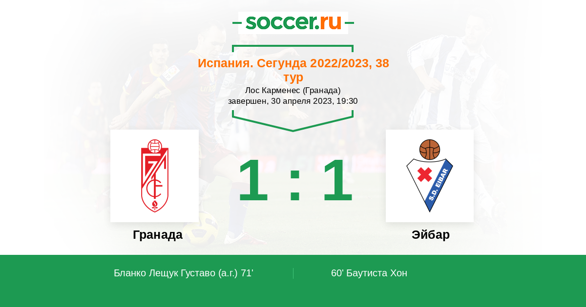 71' (1:1) Автогол Бланко Лещук Густаво (9)