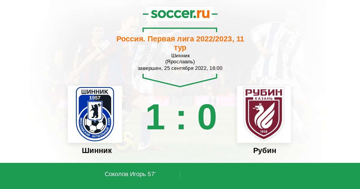 57' (1:0) Соколов Игорь (23) (Кулишев Артем (32))