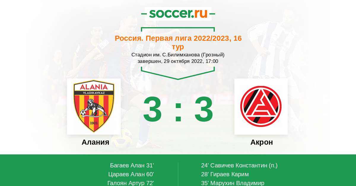 72' (3:3) Галоян Артур (20) (Хабалов Алан (77))