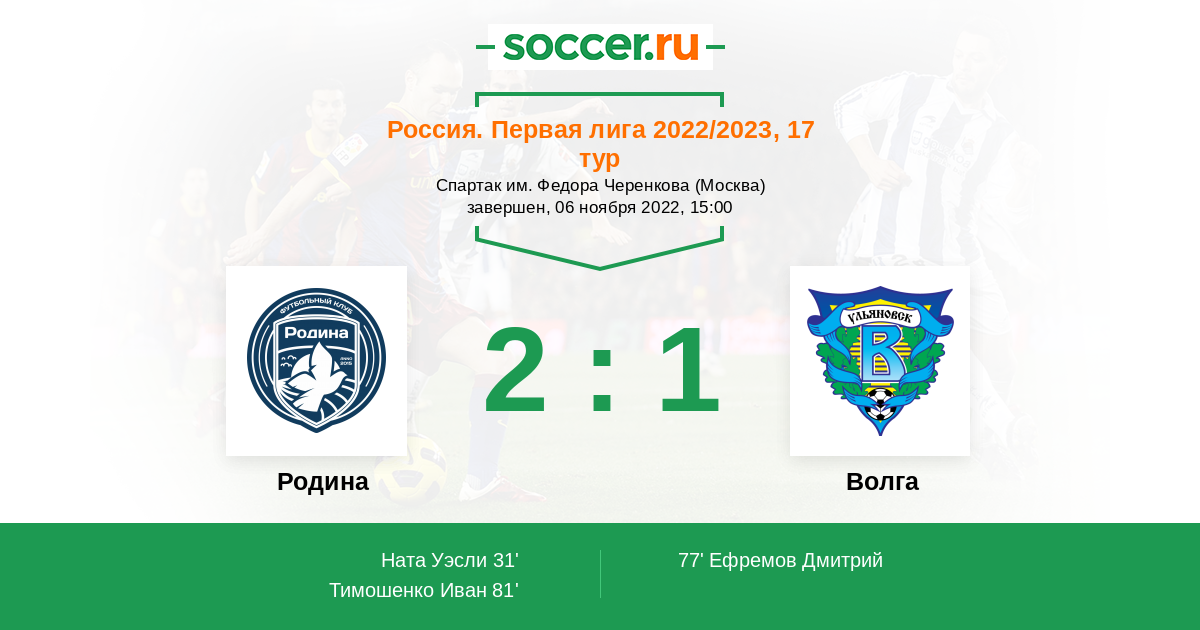 31' (1:0) Ната Уэсли (33) (Калмыков Амур (91))