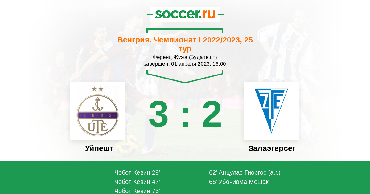 75' (3:2) Чобот Кевин (77)