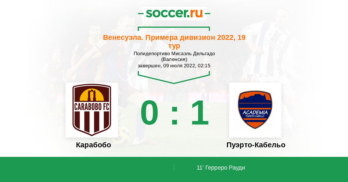 11' (0:1) Герреро Рауди (20)