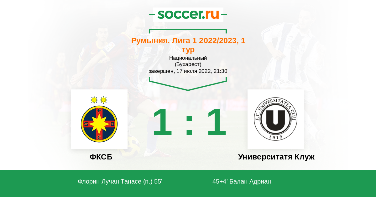 45+4' (0:1) Балан Адриан (9) (Филип Иоан (16))