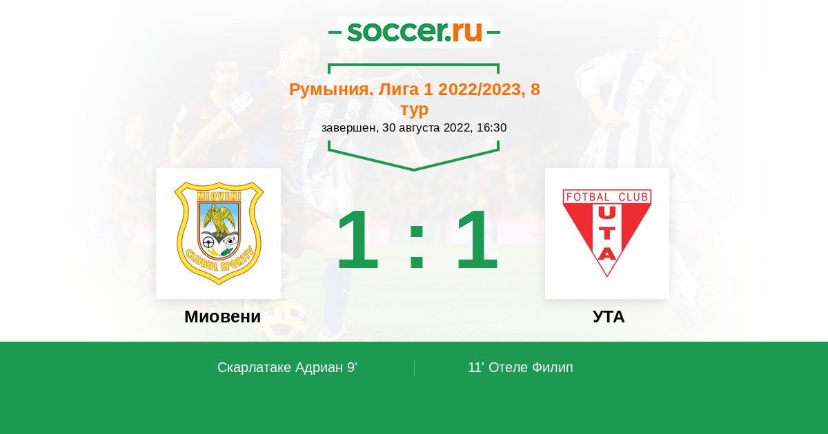 9' (1:0) Скарлатаке Адриан (15) (Антал Ливиу (17))