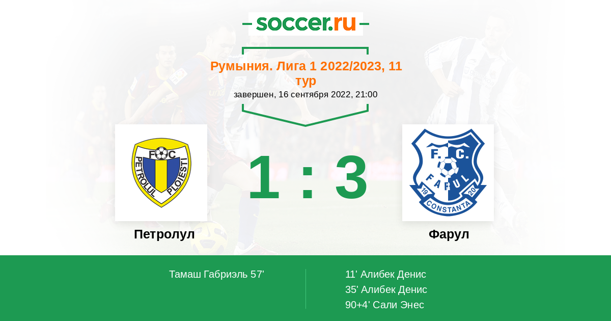 11' (0:1) Алибек Денис (7) (Мунтяну Луис (9))