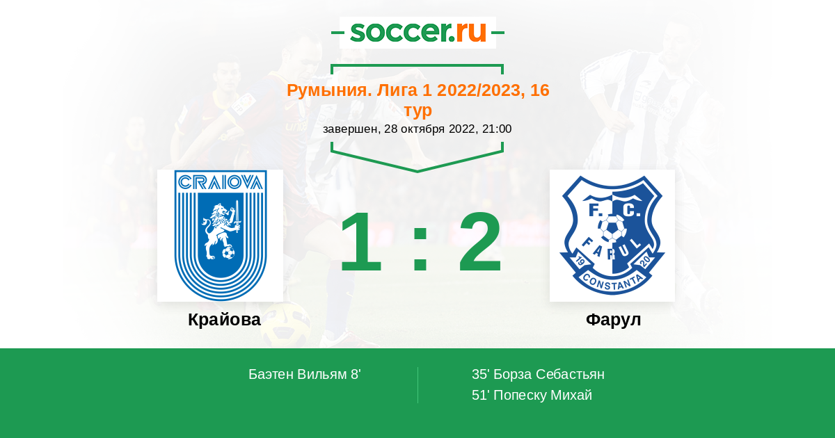 35' (1:1) Борза Себастьян (27) (Сирбу Дан (21))