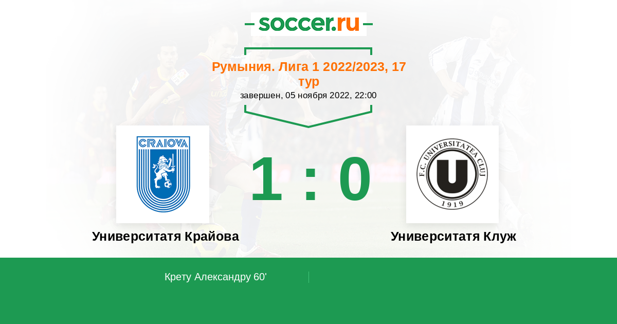 60' (1:0) Крету Александру (4) (Банку Никусор (11))