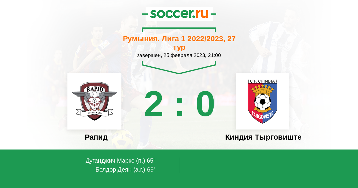 69' (2:0) Автогол Болдор Деян (25)