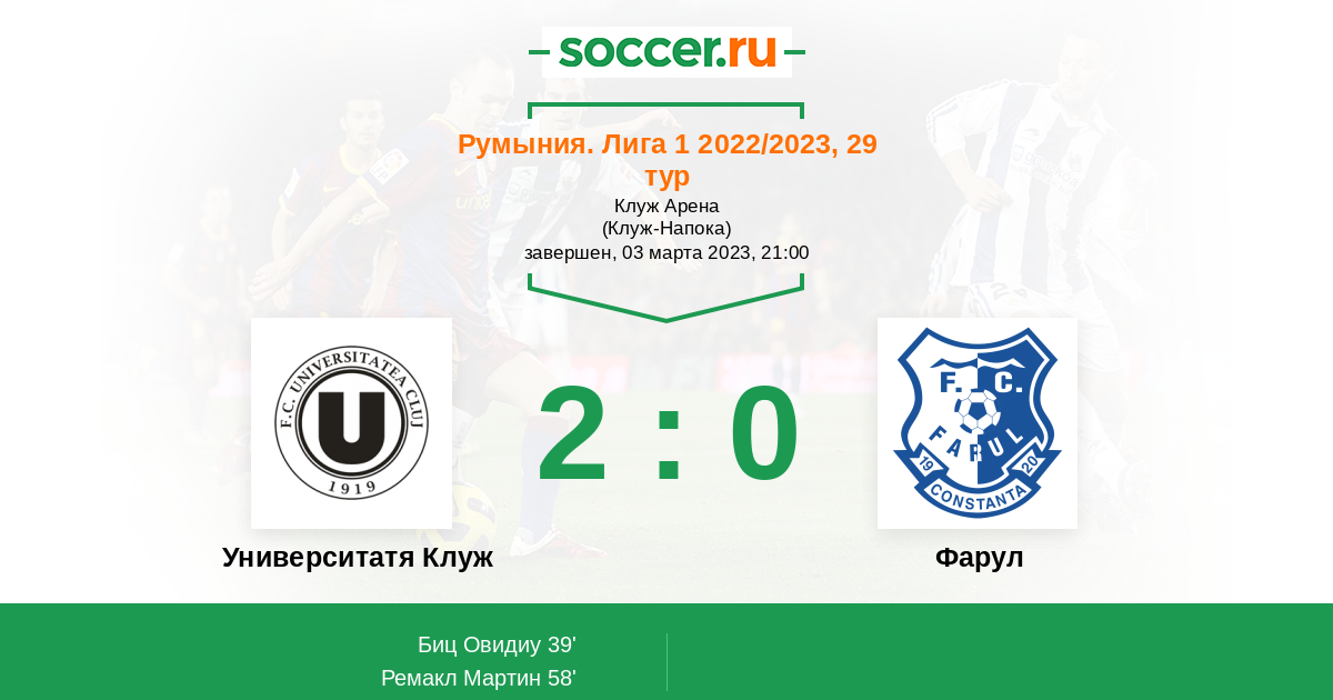 Запасные: 26 Мазилу Адриан (с 46'), 4 Дукуре Гробры Кевин (с 46'), 25 Кики Давид (с 46'), 10 Морар Влад (с 67'), 8 Касап Карлос (с 75'), 1 Бузбучи Александру, 20 Кожокару Ионуц, 45 Маринс Густаво, 21 Сирбу Дан
