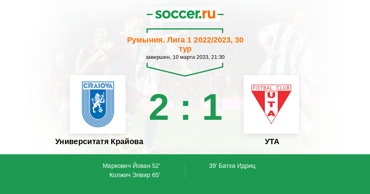 65' (2:1) Колжич Элвир (19) (Крету Александру (4))