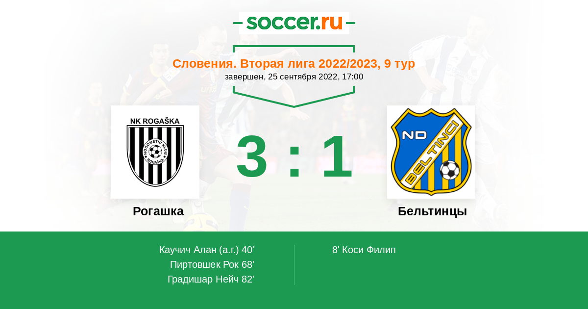 40' (1:1) Автогол Каучич Алан