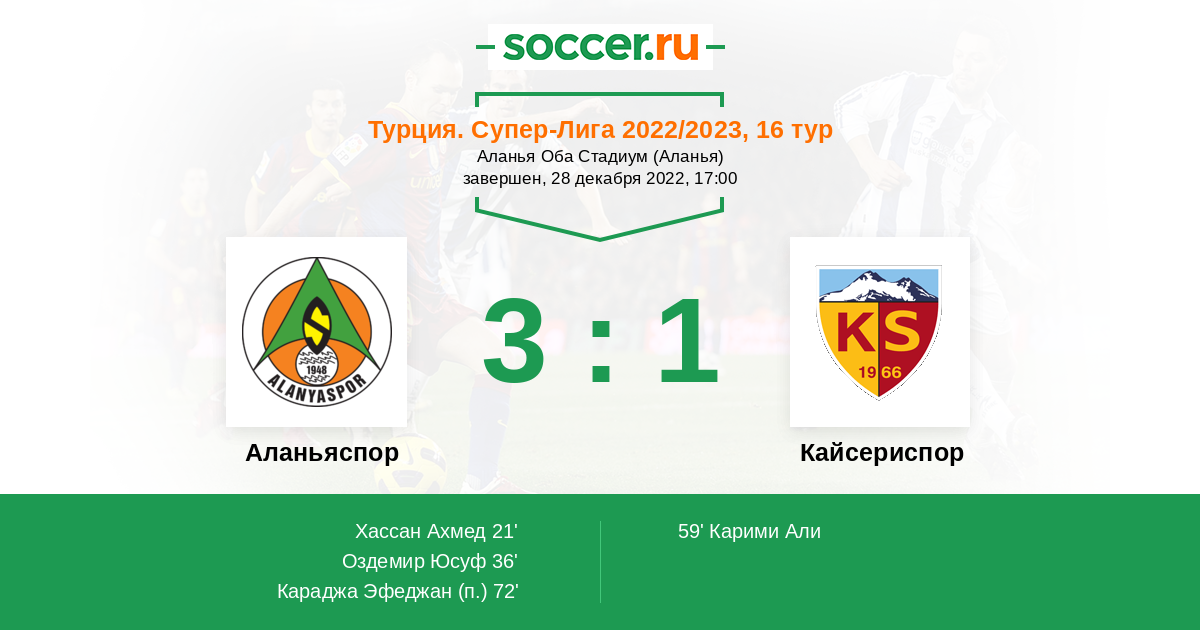 59' (2:1) Карими Али (6) (Чивелек Рамазан (28))