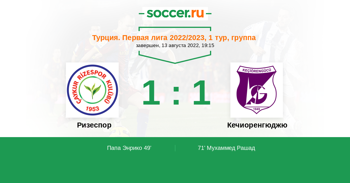 49' (1:0) Папа Энрико (67) (Кесер Бенхур (17))