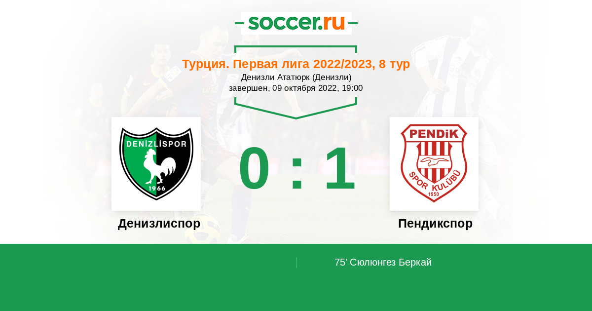 75' (0:1) Сюлюнгез Беркай (20) (Озгенч Эрдем (2))