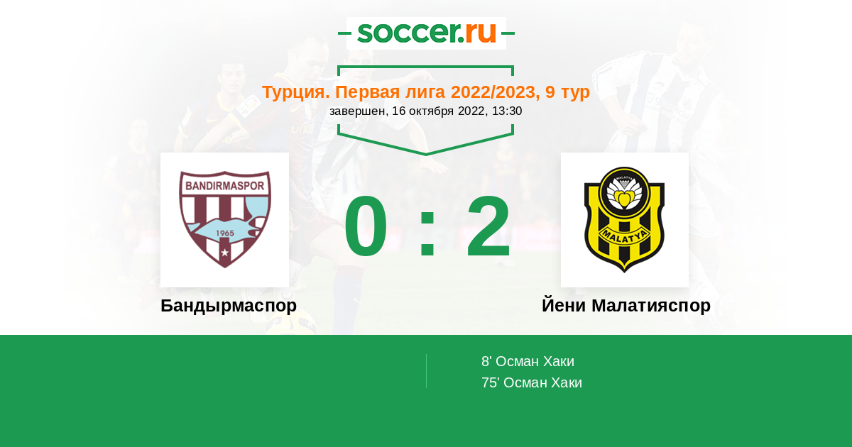8' (0:1) Осман Хаки (19) (Эмексиз Дожукан (7))