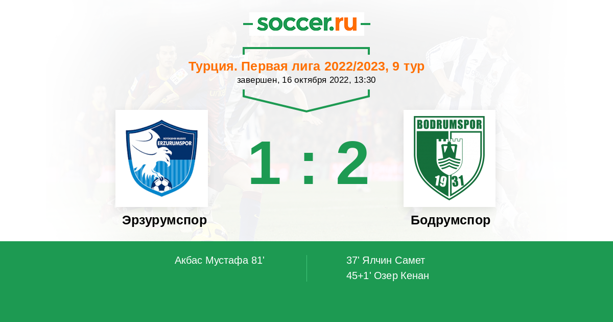 81' (1:2) Акбас Мустафа (2) (Овачикли Орхан (53))