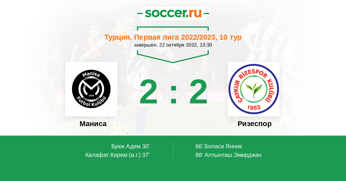 37' (2:0) Автогол Калафат Керем (22)