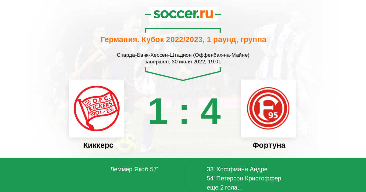 33' (0:1) Хоффманн Андре (3) (Гавори Николя (34))