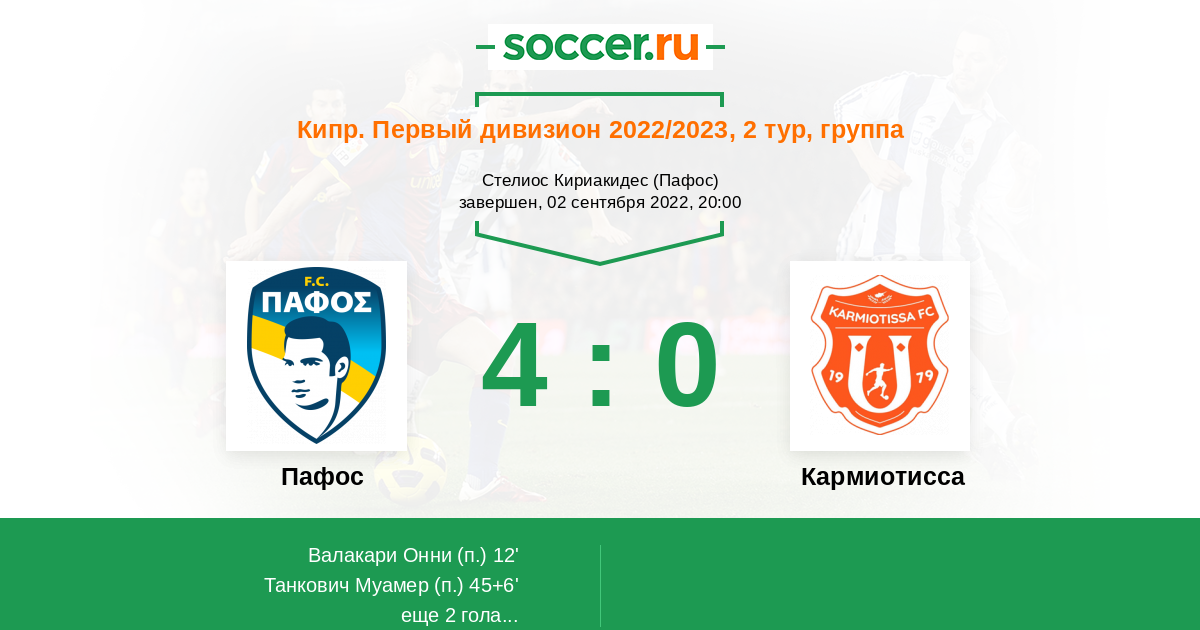 Запасные: 6 Хочко Дени (с 67'), 19 Хестад Эйрик (с 79'), 9 Аль-Гаддиуи Хамади (с 90+1'), 14 Деметриу Мариос (с 90+1'), 1 Оласабаль Ойер, 2 Паласиос Джейссон, 5 Харабадзе Леван, 21 Филактоу Герасимос, 23 Микаэль Александрос, 36 Жоао Педро, 60 Педро Пеладжо, 99 Майхрович Филип