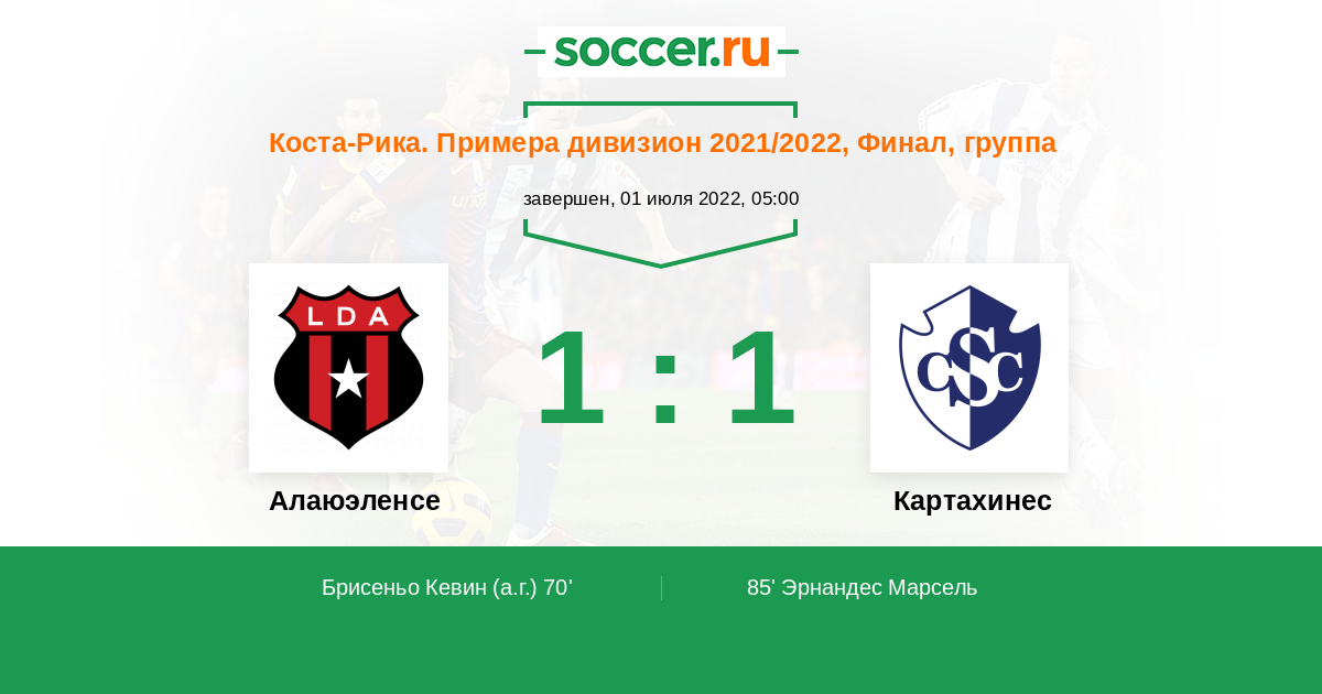 70' (1:0) Автогол Брисеньо Кевин