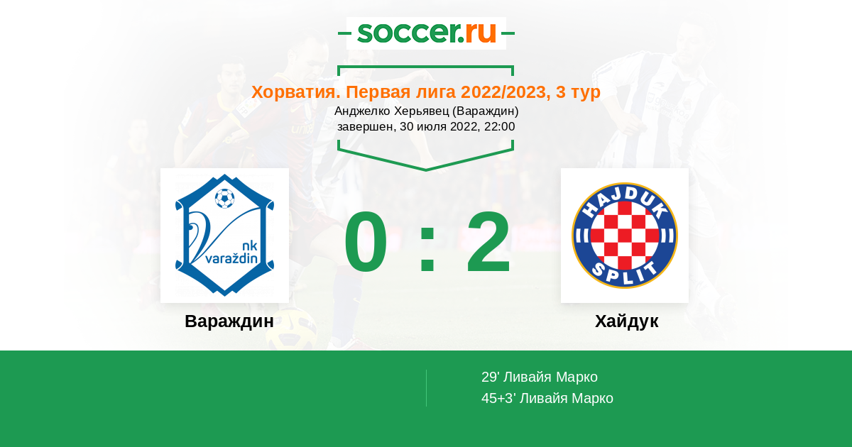 29' (0:1) Ливайя Марко (10) (Ловренчич Герго (26))