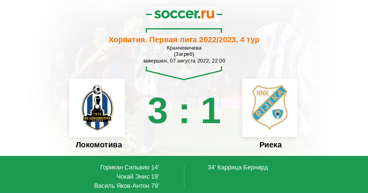 14' (1:0) Горикан Сильвио (22) (Куленович Сандро (9))
