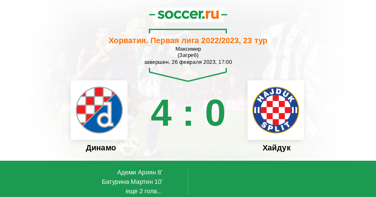 Запасные: 18 Дрмич Йосип (с 69'), 41 Рукавина Габриэль (с 69'), 70 Менало Лука (с 69'), 31 Булат Марко (с 83'), 39 Перкович Мауро (с 83'), 2 Мохаррами Садег, 33 Невестиц Иван, 1 Загорац Даниэль, 4 Шутало Бошко, 42 Луканич Лука, 36 Врбанчич Лука, 28 Теофил-Катерин Кевин