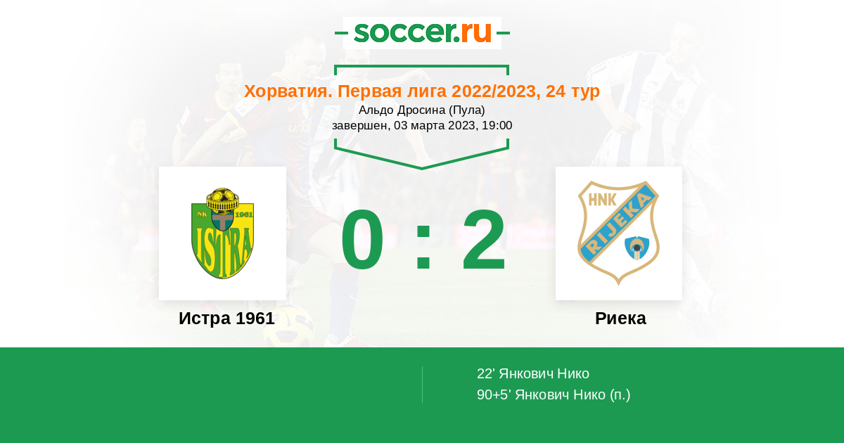 22' (0:1) Янкович Нико (4) (Фриган Матиа (24))