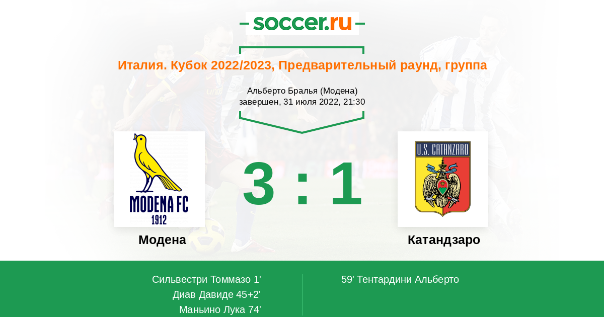 Запасные: 6 Нана Уэлбек (с 60'), 9 Иеммелло Пьетро (с 60'), 17 Беарцотти Энрико (с 60'), 19 Васкес Федерико Науэль (с 60'), 24 Соунас Димитрис (с 78'), 20 Понтиссо Симоне, 22 Сала Андреа, 91 Мегна Джорджио, 12 Риззуто Альфонсо