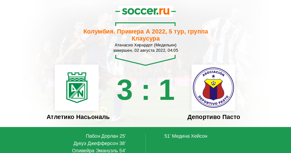 38' (2:0) Дукуэ Джефферсон (9) (Пабон Дорлан (88))