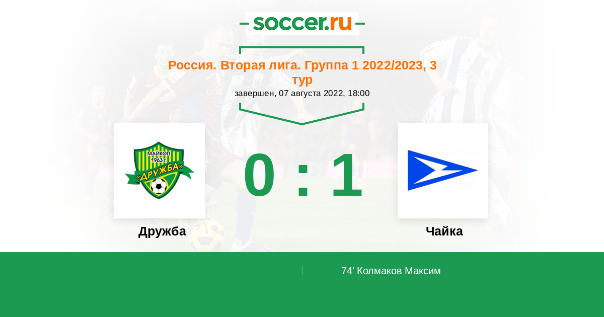 74' (0:1) Колмаков Максим