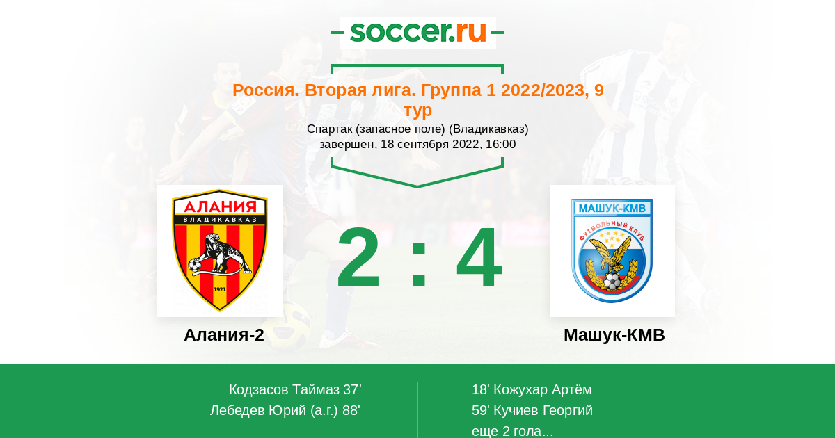 Запасные: Комиссаров Александр (с 46'), Гаглоев Тарас (с 55'), Драев Арсен (с 61'), Дудаев Инал (с 63'), Губиев Эрик (с 66')