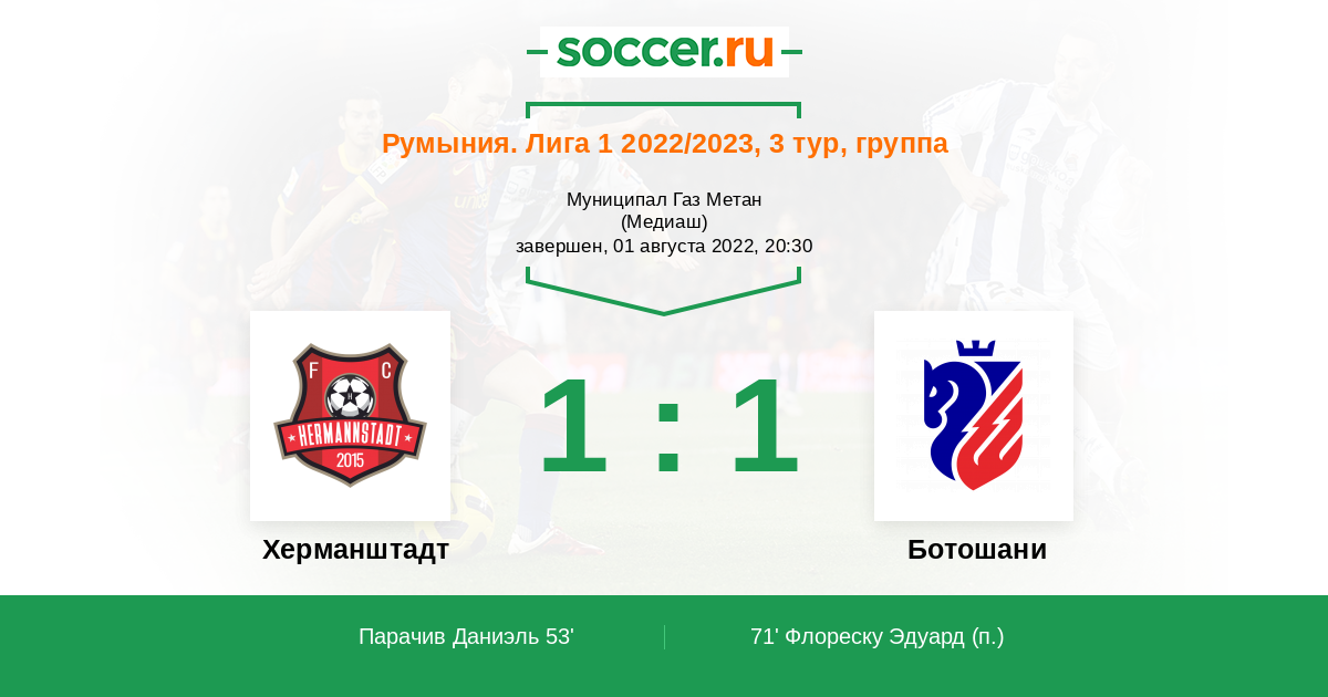 53' (1:0) Парачив Даниэль (30) (Бутян Михай (17))