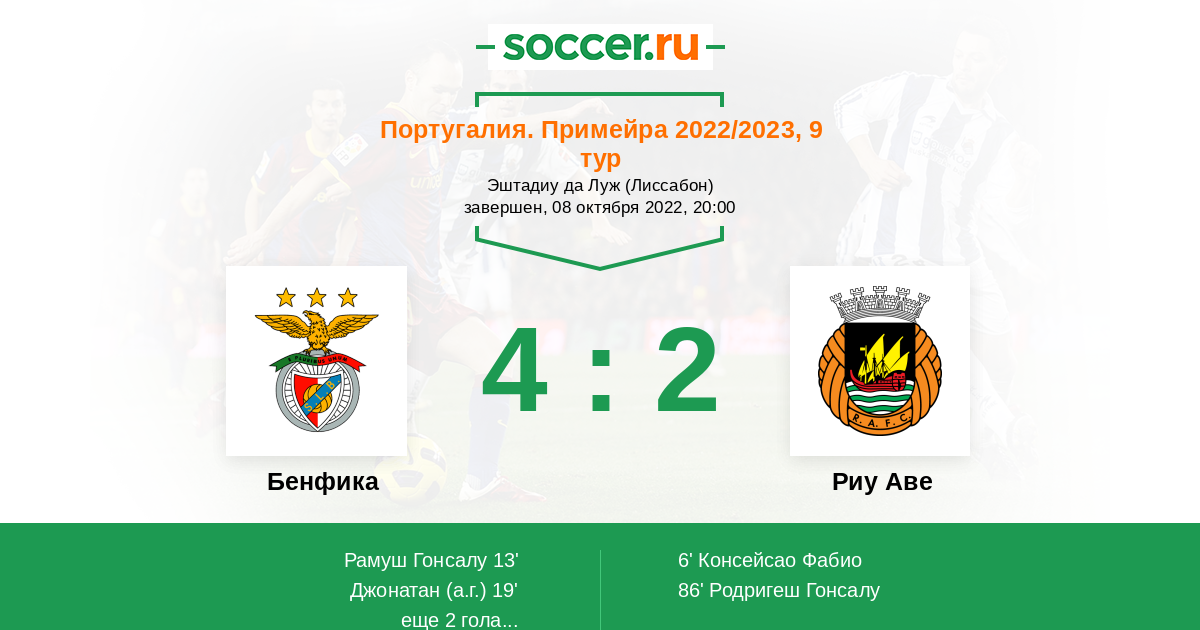 13' (1:1) Рамуш Гонсалу (88) (Мариу Жоау (20))