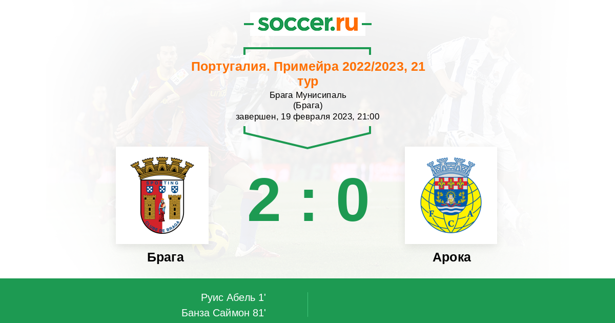 1' (1:0) Руис Абель (9) (Орта Рикарду (21))