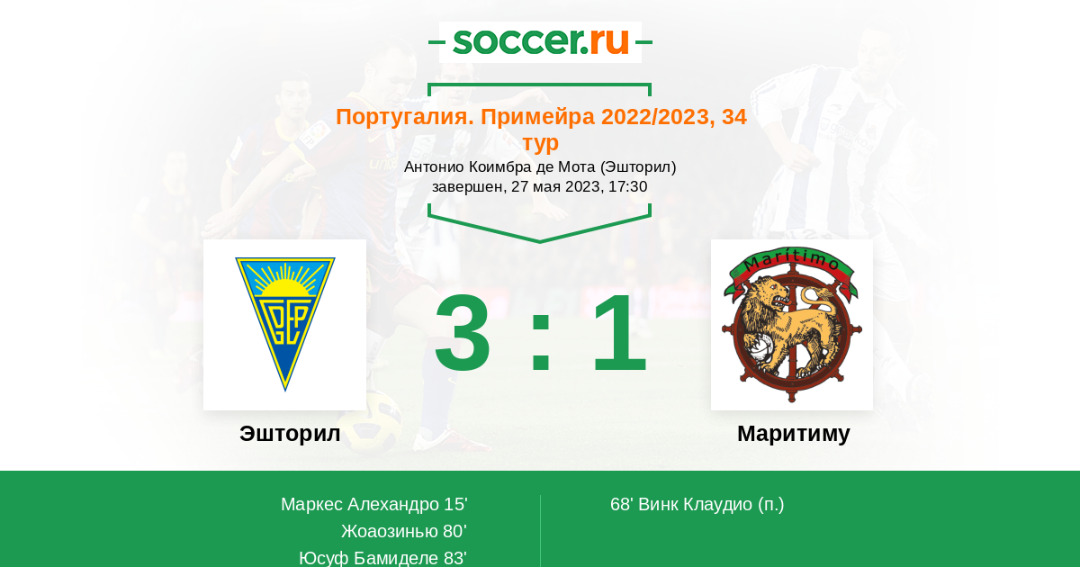 80' (2:1) Жоаозинью (31) (Сантуш Тьягу (62))