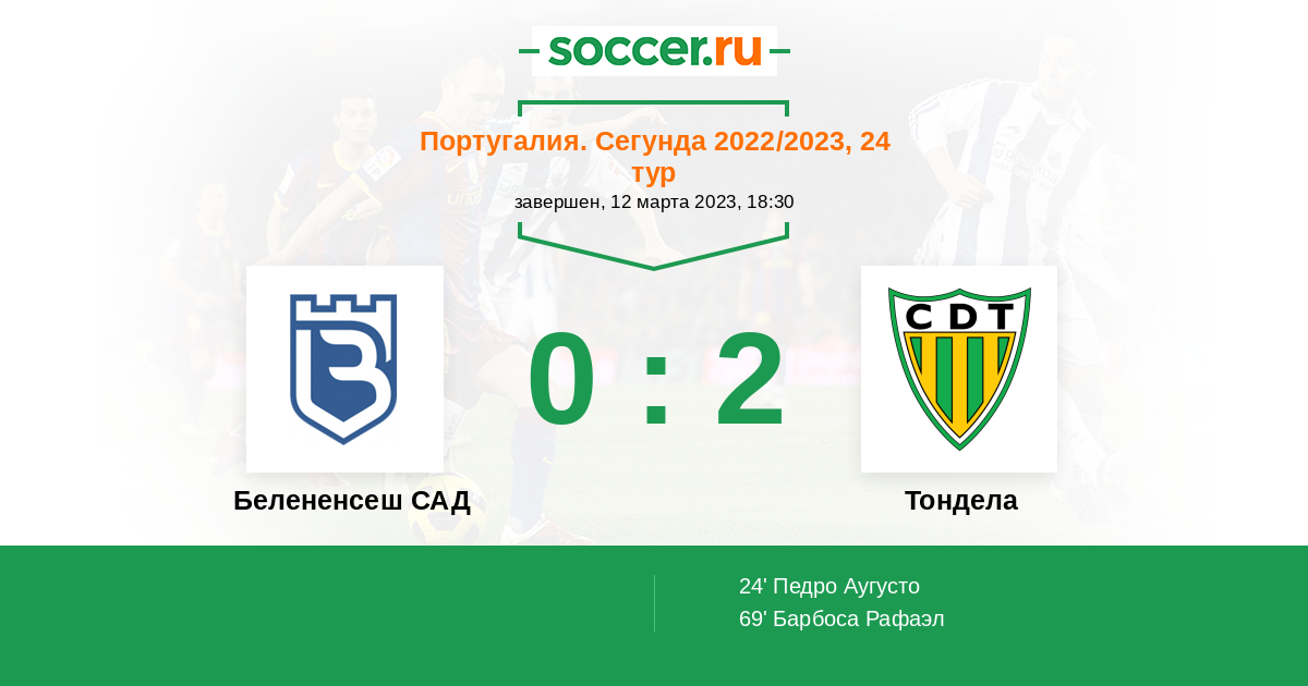 69' (0:2) Барбоса Рафаэл (10)