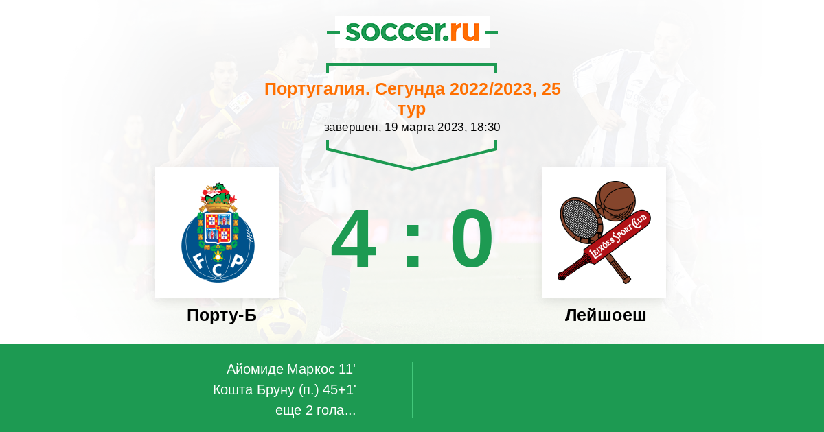 Запасные: 84 Фаустино Леви (с 70'), 85 Варела Нилтон (с 80'), 77 Монтейро Руй (с 86'), 78 Мейрелеш Жорже (с 86'), 80 Брито Луан (с 86'), 61 Иван Кардосо, 68 Оливейра Андре, 73 Брас Габриэль, 76 Родригеш Диниш