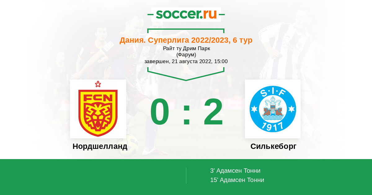 15' (0:2) Адамсен Тонни (23) (Сонне Оливер (5))