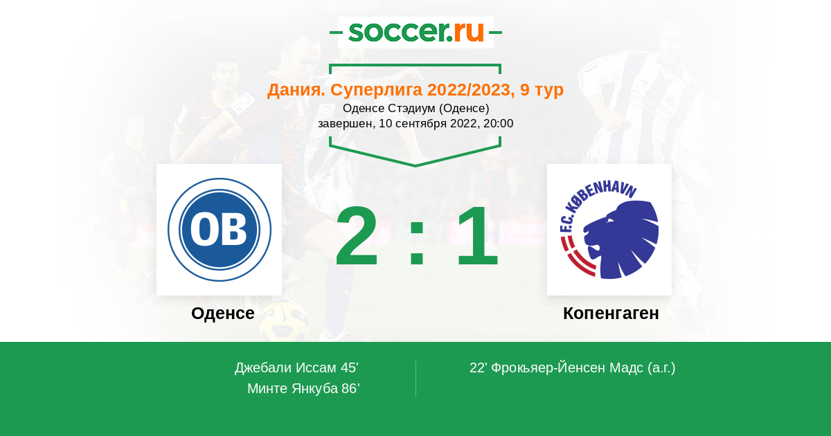 22' (0:1) Автогол Фрокьяер-Йенсен Мадс (29)