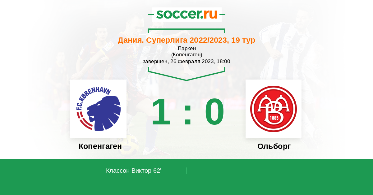 62' (1:0) Классон Виктор (7) (Кристенсен Элиас (19))