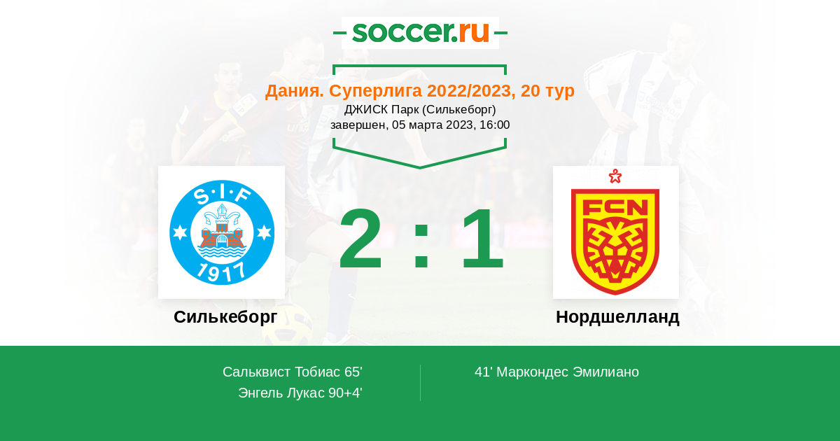 65' (1:1) Сальквист Тобиас (20) (Адамсен Тонни (23))