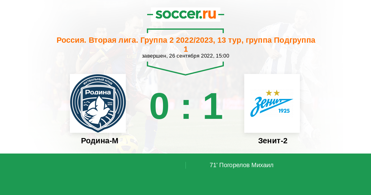 71' (0:1) Погорелов Михаил