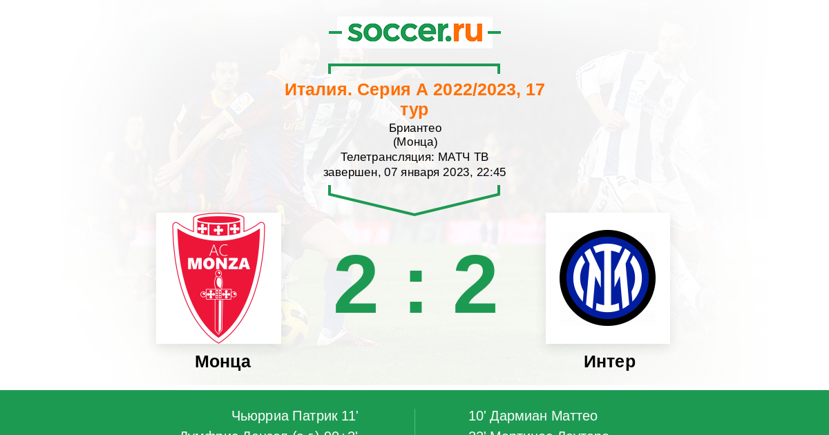 10' (0:1) Дармиан Маттео (36) (Бастони Алессандро (95))