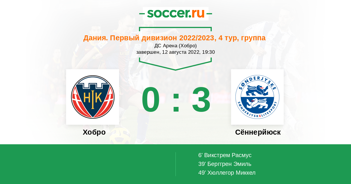 Запасные: 8 Троелс Клове (с 28'), 9 Хюллегор Миккел (с 46'), 6 Хаджич Аднан (с 46'), 15 Кристенсен Маркус (с 54'), 19 Ладефогед Миккель (с 66'), 13 Альструп Маркус, 14 Кристинссон Кристофер, 33 Йессен Себастьен, 25 Тайво Абдулрахман