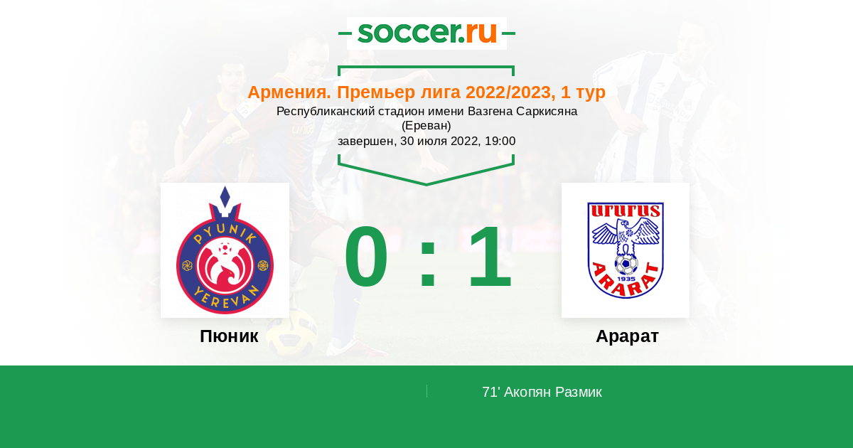 71' (0:1) Акопян Размик