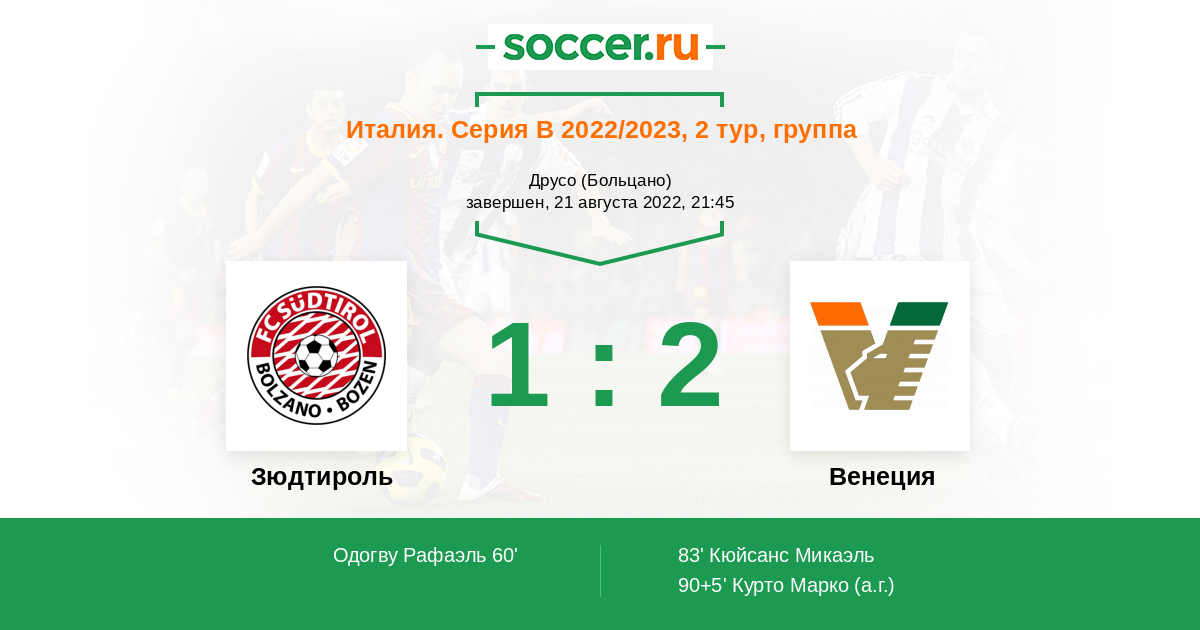 60' (1:0) Одогву Рафаэль (90) (Карретта Мирко (10))