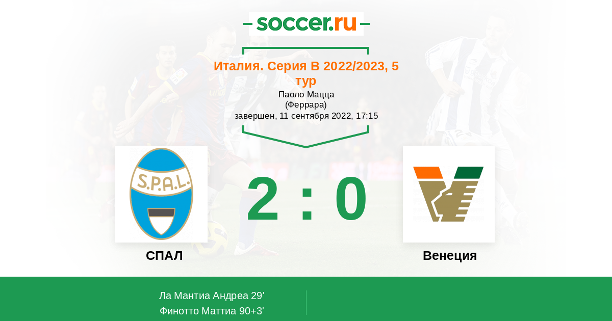 29' (1:0) Ла Мантиа Андреа (19) (Мончини Габриэле (9))