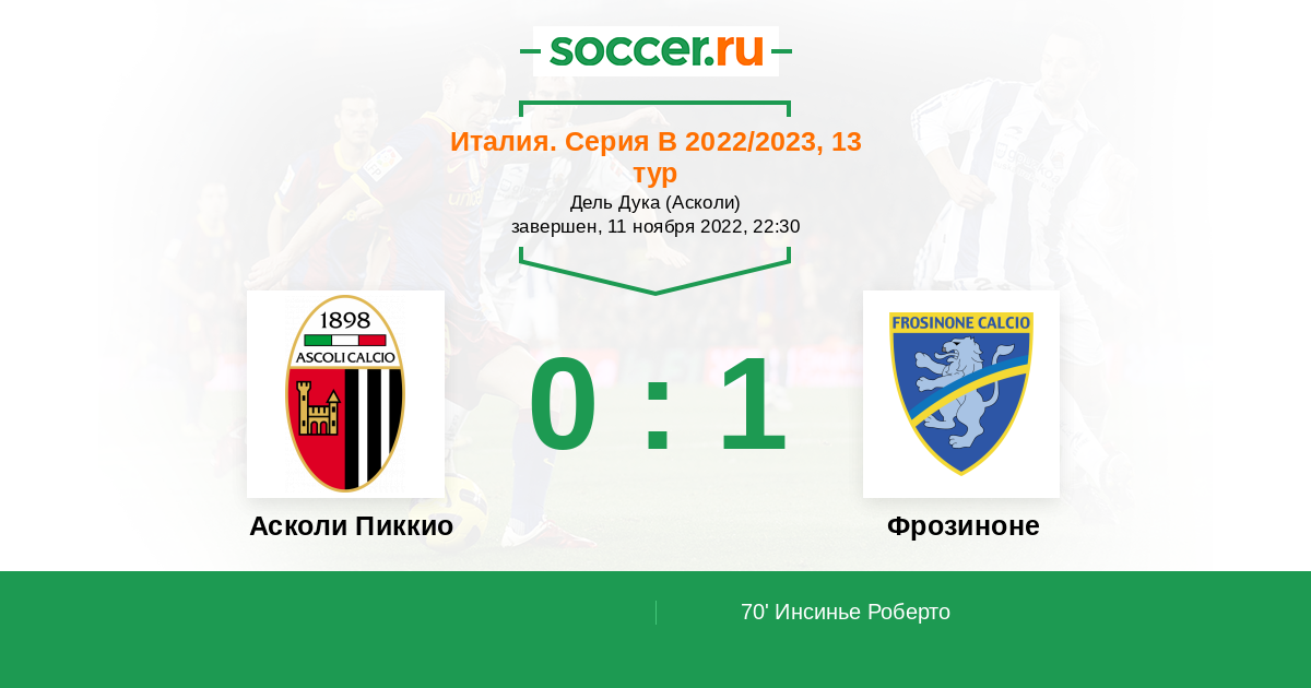 70' (0:1) Инсинье Роберто (94) (Мулаттиери Самуэле (9))